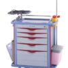 • Features: [‘1 X Defibrillator / Monitor shelf’, ‘2 x Waste bins’, ‘1 x Plastic cardiac board’, ‘1 x Oxygen bottle holder’, ‘1 x Sliding shelf’, ‘125 mm castors 2 with brakes’, ‘1 x Sharps container’, ‘1 X Plug and extension’, ‘1 x I V pole’, ‘Pus handle’]