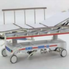 Hydraulic patient stretcher with a 4 part stretcher surface. Main Features: Leg section adjustment with a gas spring mechanism Hydraulic height adjustment and hydraulic Trendelenburg and reverse Trendelenburg tilting Air assisted backrest operation. Metal folding side rails. Mechanical CPR (Flat position of the backrest for emergency CPR) Central locking castors with linear directional movement (200mm) Plastic protection bumpers. Full X-ray from the head to the foot. X-ray cassette holder. Oxygen cylinder holder. 5th castor direction tracking. Basket. Urine bag holder. Belt hook. Accessories slots. Height adjustable IV pole. 32 density mattress 840 x 2140 mm H MIN : 600 mm H MAX : 910 mm
