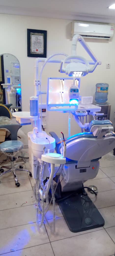 Dental Unit With complete accessories Dental chair, Light cure, Ultrasonic scaler with led Teeth whitening machine, Handpiece kit Paper support tray with tissue box Intra oral camera with 17″ monitor Dental chair cover.