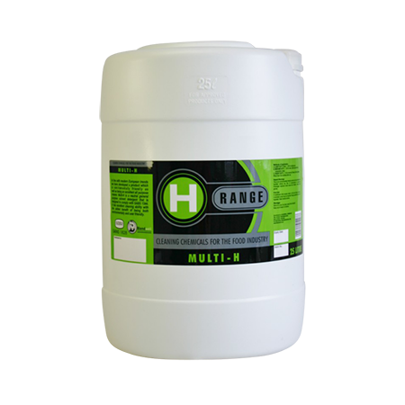 A) LIGHT DUTY: Dilute 50ml of Multi H in 10 litres of water for windows etc B) MEDIUM DUTY: Pour 200ml Multi H in a bucket and fill up to 10 litres for walls, table tops and food preparation areas. C) HEAVY DUTY: Dilute 1 litre Multi H with 9 litres of water for removal of heavy oils and grease. |